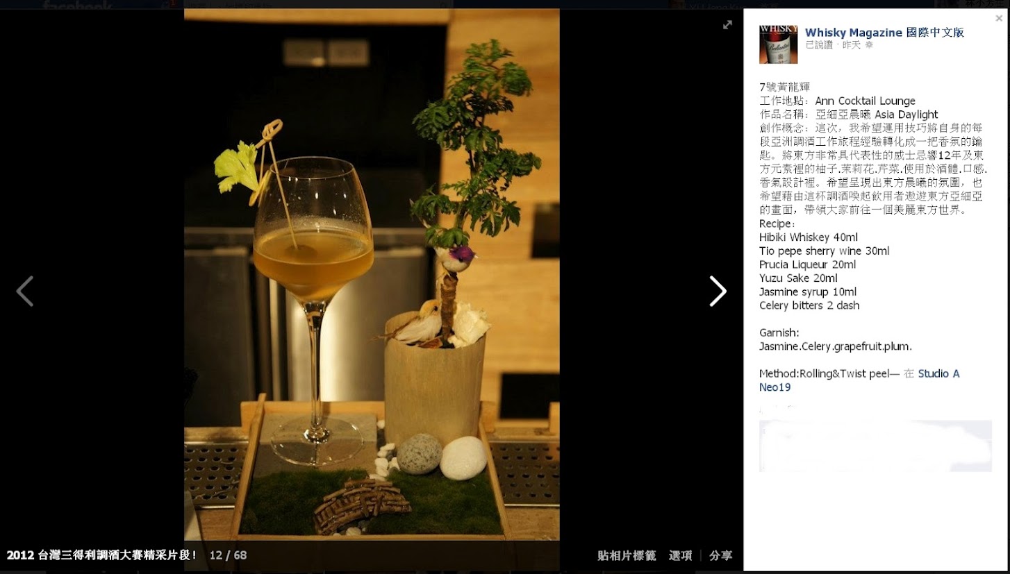 後來找到他們的FB才知道他們有去參加「2012 台灣三得利調酒大賽」。
